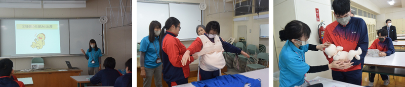 12月10日(水)2年生8名は、本校にて「性の指導」を実施しました。講師は、奈井江町保健センターの保健師の方々に来校いただき、「妊娠ってどんなこと?妊婦体験をしてみよう」と題して、正しい性の知識・情報の講話と、妊婦体験キットを着用して日常生活の動きを体験する演習を行いました。